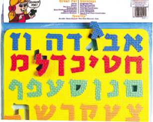 Foam Hebrew puzzles do double duty in the bath: they stick to the sides of a wet tub and introduce the aleph bet. Pick the ones with a smooth texture on the back, so you don’t place the letters backwards. This tactile clue is handy for kids and adults who are learning. (Plus, you can use them as rubber stamps and tracing forms.)
