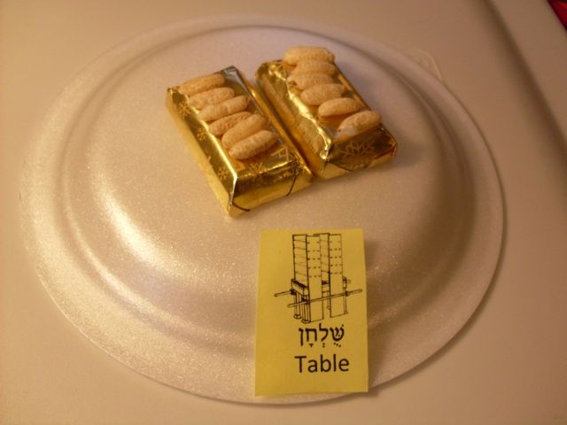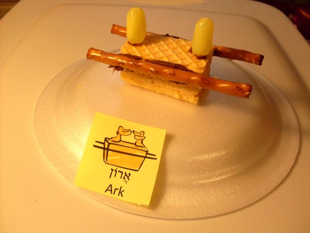 The cute labels are from a lesson plan called “Cut and Paste Mishkan,” submitted by J. MacLeod at the Hebrew day school education site Chinuch.org. I used the labels only. The edible idea is mine.