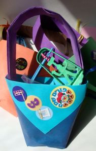 Just about any origami box, bag, envelope or basket can be a Mishloach Manot container, but this one is actually easy enough that little kids can make it.