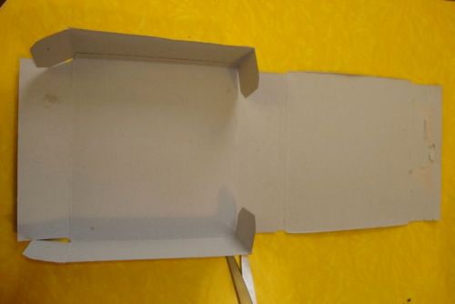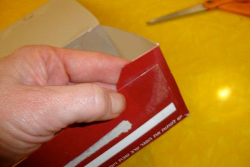 After cutting along the outer edges of the front of a matzah box (two cuts)