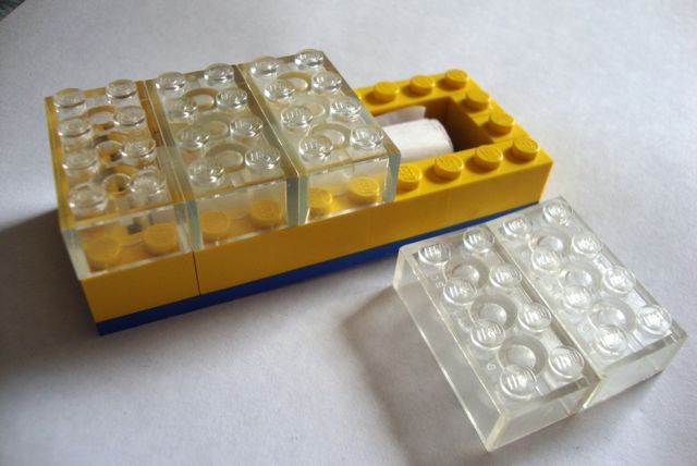 I’m a big fan of making mezuzah cases with kids, and especially out of found materials. In my house, Lego qualify as found material, as they are found under every large piece of furniture.
