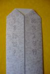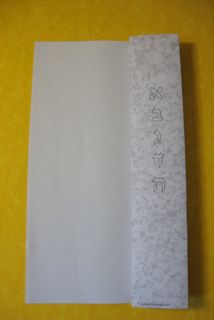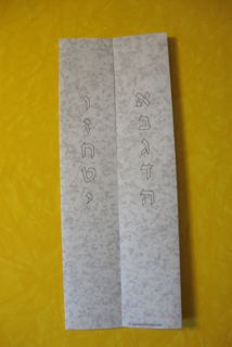 The PDF template below has a “granite” background and two rows of Hebrew letters that will end up in the right place when folded. What’s with the letters? A common visual representation of the Ten Commandments uses the first ten letters of the Hebrew alphabet to symbolize the mitzvot (commandments). There’s a vertical row of five letters on each tablet, each one serving its ancient double-time as a number: aleph for one, bet for two, gimmel for three, and so on.