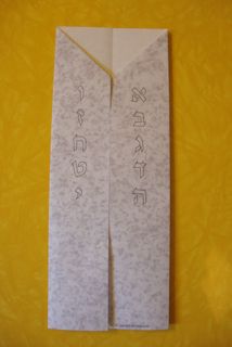 Just print the template, fold as directed, and let your child fill the outlined Hebrew letters with colored pencil, crayon or marker. After you fold the first one, you’ll be better able to help your child with the next. Mail one to Bubbie, if you are lucky enough to have a Bubbie. I already sent one to ours, and she, ever the educator, said it needed pictorial representations of each mitzvot. However, I leave it to you to come up with o.5″ icons that convey “do not murder” and so on. My job is done.