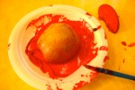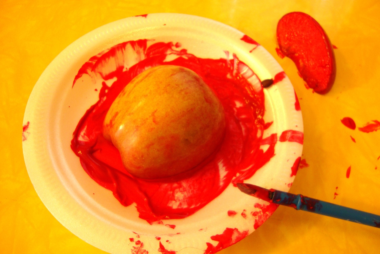 6. Dip apple piece into paint. Use a paintbrush or finger to apply the paint evenly, if you must.