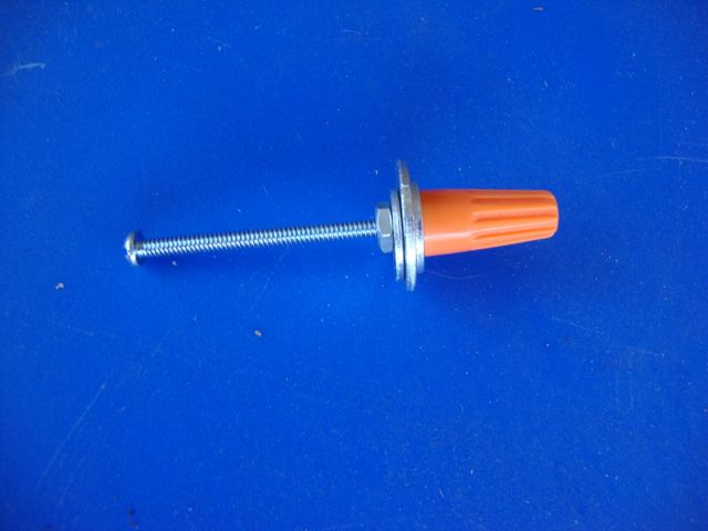 Hardware “flame:” machine screw, nut, washer, wire nut.