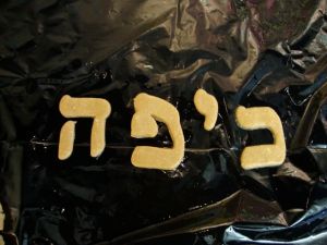 I had some new Aleph Bet cookie cutters to try out, and my son’s Sunday School teacher okayed my idea to bring in some edible playdough. The kids selected the cutter letters that were part of their current unit: a kaf, yud, pey and hey, which spell kipah (Hebrew for yarmulke, which is Yiddish for, as my Dad used to say, “those beanies.”).