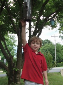 “Feed the birds and what have you got? Fat birds!” fussed Mr. Banks in Disney’s Mary Poppins, and I’ve heard similar opinions in real life, especially about feeding birds in warm weather. However, I take as my authority the Cornell Lab of Ornithology, whose FeederWatch program recommends feeders year-round. The birds get free food for the taking: a minimum of effort for maximum benefit. Meanwhile, what have I got? A minimum of effort for maximum benefit too, because I’m not really the one who feeds the birds. Preschoolers do. They are the real reason that I lug that bag to school. Four bird feeders within sight of a wall of classroom windows—two seed tubes and two hummingbird feeders—give kids a hands-on reference point to the natural world. Just by maintaining the feeders, they are involved in the process of creating an ecologically-friendly habitat and a love of nature. They do all the work, and while they work, we talk, we look, we listen.