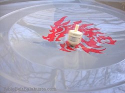 A Beyblade stadium cries out for conversion to a dreidel stadium, but such things are usually only found in homes with a particular demographic. Beyblades are marketed to the gender/age group most likely to spend every discretionary dollar on Manga-inspired, zip-launched battle tops. I don’t own any Beyblades (yet), but I just bought a stadium to use with ordinary dreidels. The gently concave bottom and curved sides keep dreidels in motion longer than do a flat bottom and 90 degree tray sides.