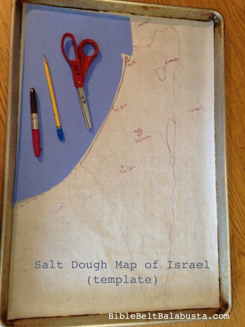 So many salt dough maps online. The most popular versions use pieces of old corrugated cardboard boxes as substrates. Look at these gorgeous examples from Kid World Citizen, from Squidoo, and from older kids at Ginger Snap Shots. I didn’t see Jewish maps of Israel (only Christian-based, which document some features that aren’t in our curriculum), but if you know of any, holler and I will add links here.