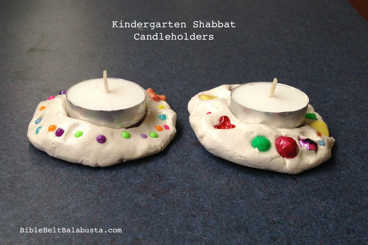 That being said, below are Kindergarten air dry candleholders meant for wax tea lights. Tea lights are “safer” than naked candles because they are cradled in a metal dish. If the clay is nowhere near the top of the metal, things should go according to plan. If the holder is deep, and the tea light doesn’t extend above it, I’d worry. Also, grownups will have to make absolutely sure the tea lights will sit level in the holders: no slanting. Slanting means that flame might slant, too, and lean over to catch the clay or those infamous pony beads alight.