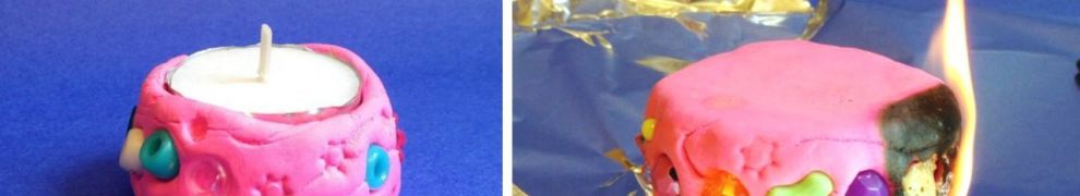 Bottom line for people who program crafts is that it is hard to find a safe, easy-to-work material for kids—or anyone—to make DIY candleholders. I’m still looking. I am determined to find a clay suitable for candleholders that does not need to be fired in a kiln. Air-dry or oven-baked is what I’m after.