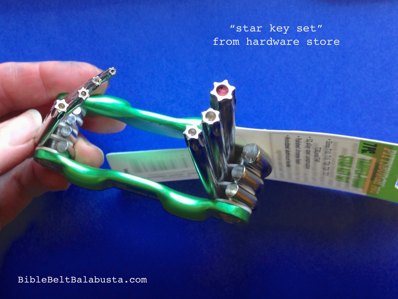 You know how the Jewish education world talks about seeing the world through Jewish lenses? (Figuratively speaking. For literal Jewish lenses see my note below.) Mine are always on, and a stroll down the aisles of a hardware store usually ignites Jewy upcycle-repurpose ideas. When I first saw these Torx screwdrivers at Harbor Freight, I went weak at the knees. True, I was also woozy from rubber tire off-gas, but the screwdrivers were an absolute thrill.