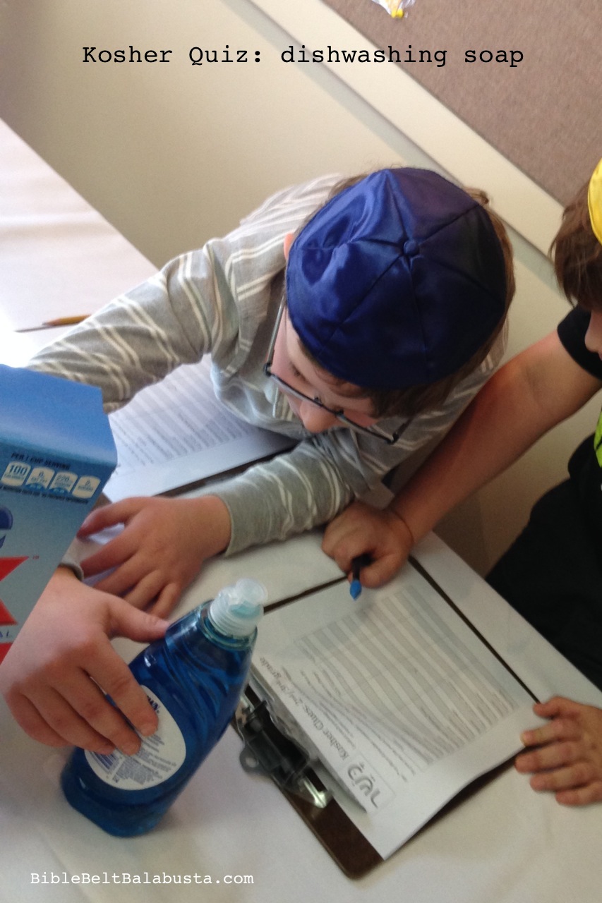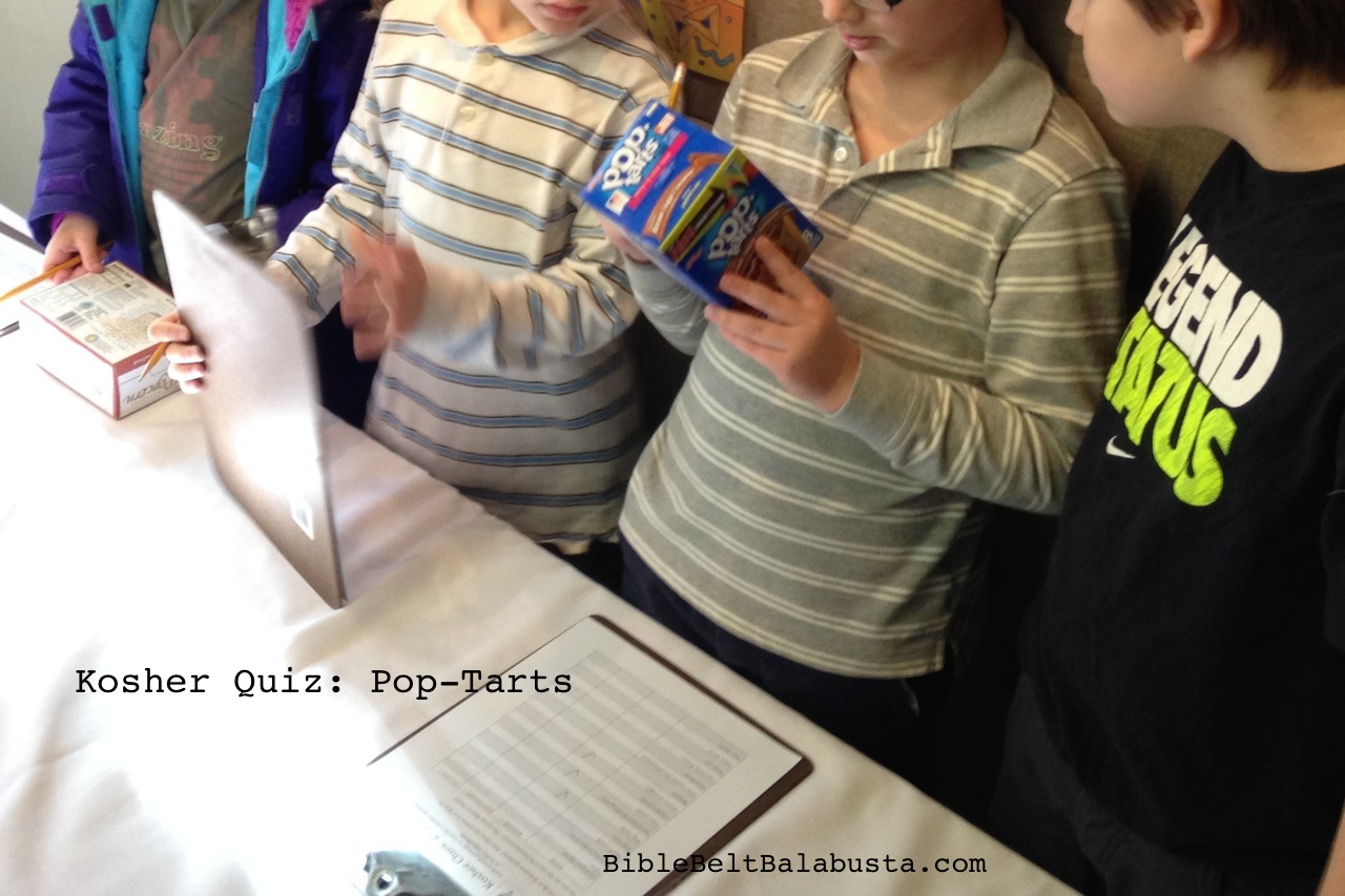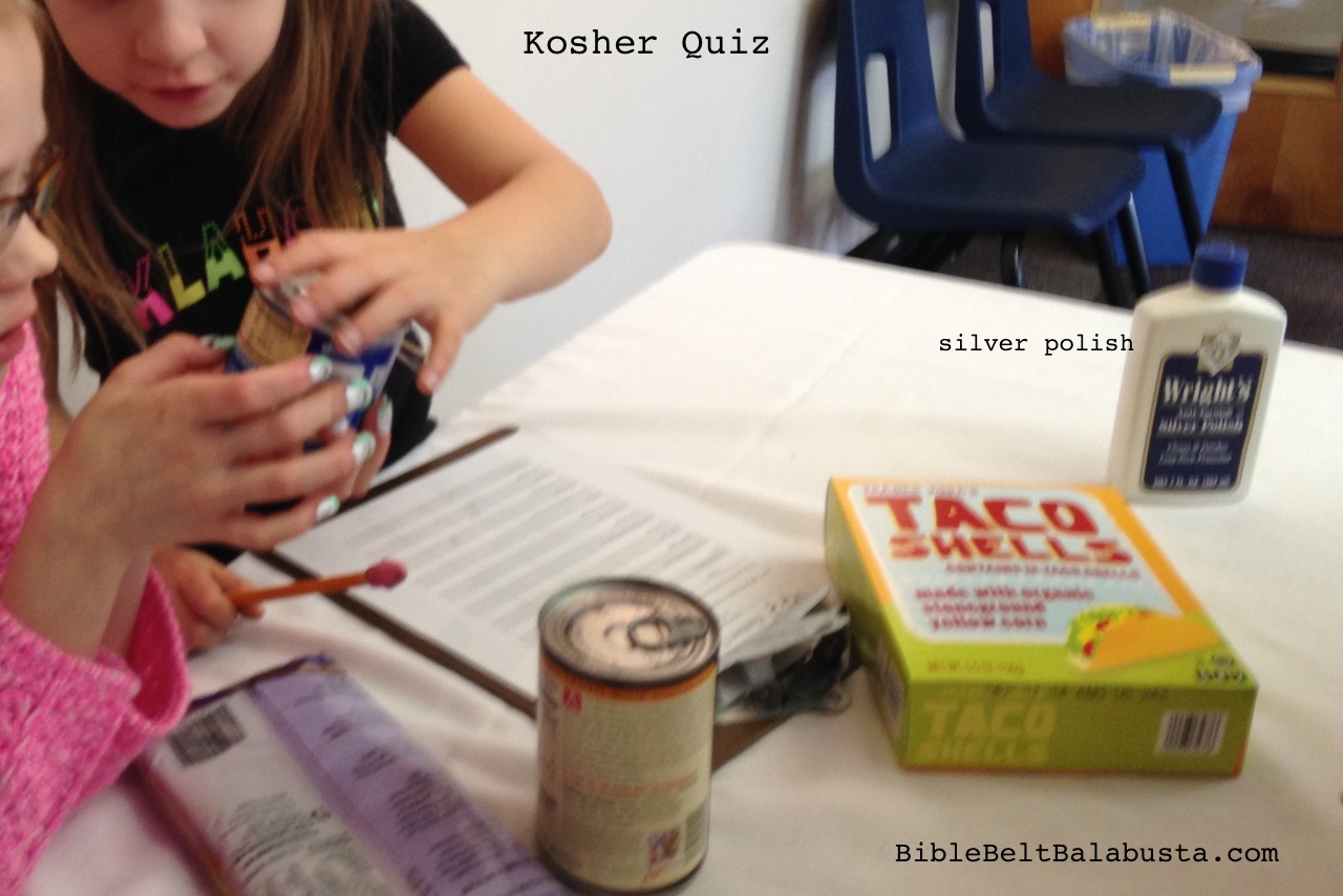Things I did not anticipate at yesterday’s Kosher Grocery Quiz: 1) despite being Southern, our little Jewish kids had no idea what “pork rinds” were and did not think them hilarious, and 2) every single child assumed the “silver polish” was something ladies do to fingernails.