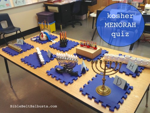 We did this today and it was tons of fun. After a demo of Hanukkah menorah rules, we had an energetic discussion why or why not each of these eight examples were kosher: