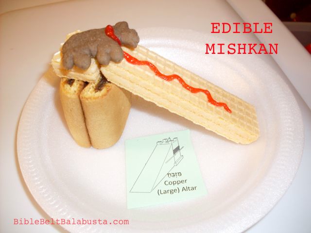 Last week’s Parsha was Vayakel, the one where the Israelites build the Mishkan, the Tabernacle in the wilderness. So, for a Shabbat activity at synagogue, I created an Edible Mishkan. Each kid 2nd grade and up made a personal, edible Mishkan.