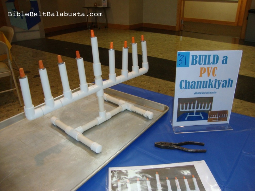 • PVC Menorah Take-Apart, Put-Together: see my (utterly original) project here. 100% hardware–even the flames–and kids love it. (Can you tell I am particularly pleased with this one?)