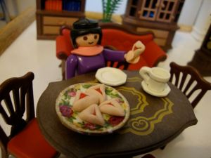 I’ve just cleaned my screened porch for summer, and we’ve transfered some rug toys out to the concrete: Thomas and Friends and their endless track, Duplos, and wooden blocks. We are lucky to have Teenager’s old blocks: the thick, heavy kind we can really build with.
